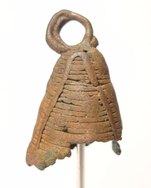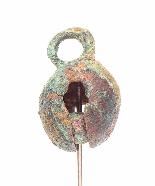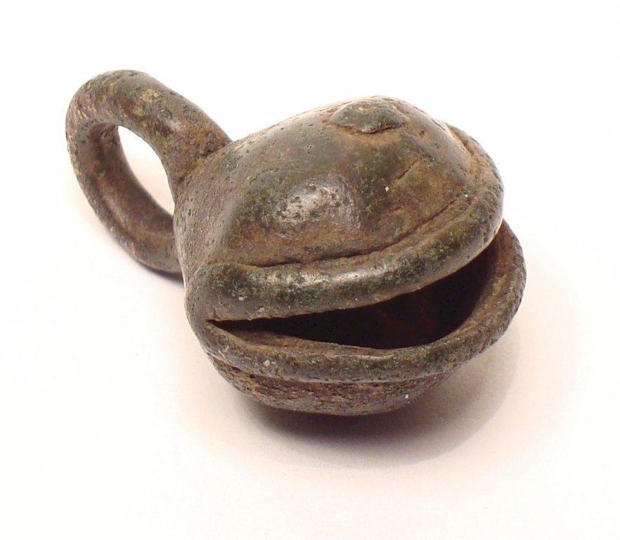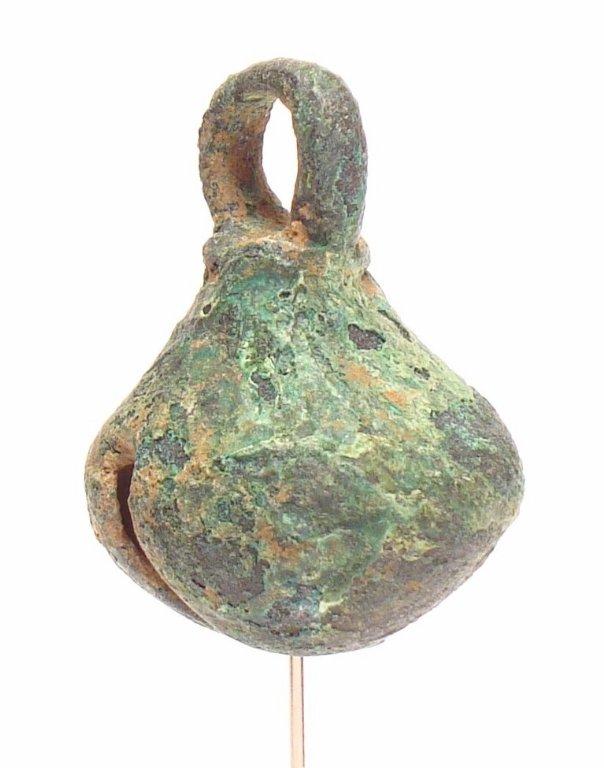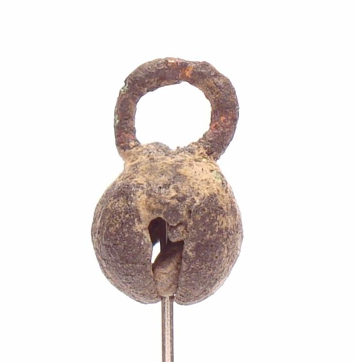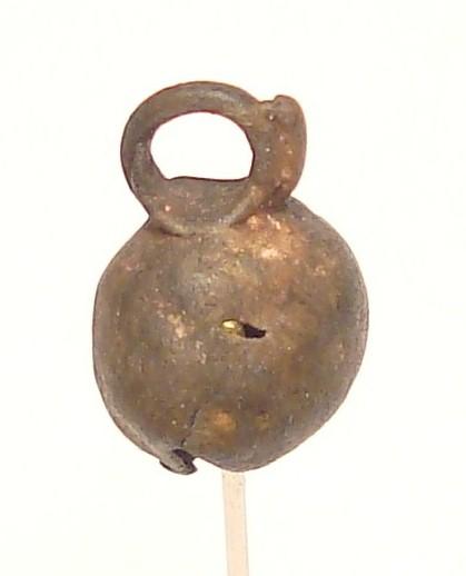 The suspension ring of this design shows no signs of the connection with the smelting channel, but there is a metal clapper in the interior.