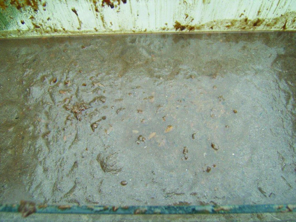 The sprat (5-10 cm) broke open within 12 hours and became a paste within 5 days (see Figure 2 which shows the tank of sprat paste before the additional liquid). The larger sardines (10-20 cm), without extra viscera did not liquefy at all while even the sardines of this size with extra viscera and liquid did not fully liquefy. The eviscerated but un-washed mackerel also remained solid through the circa two year project demonstrating the crucial importance of the enzymes associated with the viscera. The low yield of brine in the sprat and sardine experiments meant that the liquid rapidly became saturated in particles of muscle tissue which resulted in a halt to the dissolving process. It was only possible for the sardine to become a paste if there was sufficient liquid for them to dissolve into, otherwise the fish remained suspended. There was a clear need for extra liquid to be added, particularly as most of the natural brine generated would eventually evaporate away in the heat. The fish tanks were covered but not sealed and housed in a green house to duplicate the Mediterranean temperatures. The sardine experiment lost nearly 2.5 l of its volume to evaporation after 80 days which concentrated the generated sauce into a thick paste with limited potential sauce.