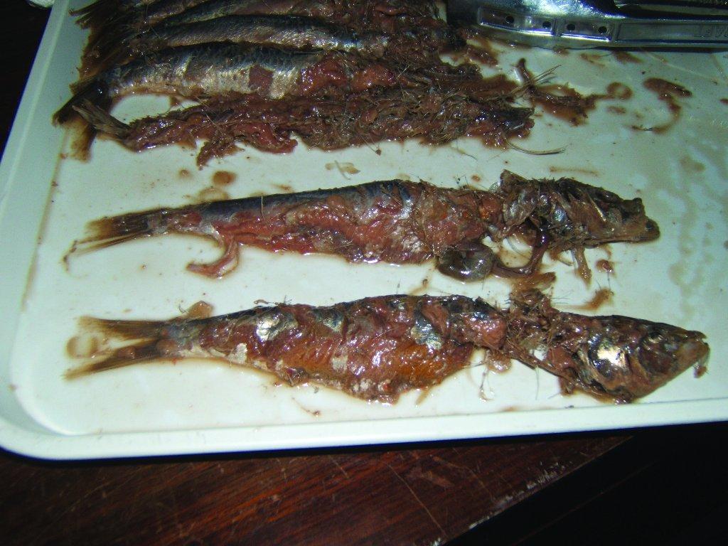 I conducted seven basic experiments in order to understand what happens to fish under numerous different kinds of conditions and also to understand the precise consequences of the addition of extra viscera to the production of a whole fish sauce. The experiments comprised various weights of fish up to 10 kg in batches of the following: eviscerated and cleaned salted mackerel; a fully eviscerated but unwashed mackerel, sardine without the additional viscera and sardine with the additional viscera and extra liquid. Finally, a sauce was made with large mackerel that were individually cut open to ensure the viscera were exposed to the salt with additional liquid. An additional experiment was added after reading the Comis and Re (2009) to ascertain the initial brine yield from whole fish both with and without exposed viscera. Each was studied to ascertain the degree of liquefaction that takes place under these different conditions and the distinctive qualities of each were reported (Grainger 2010). Here I can only give a brief resume of some of the results.