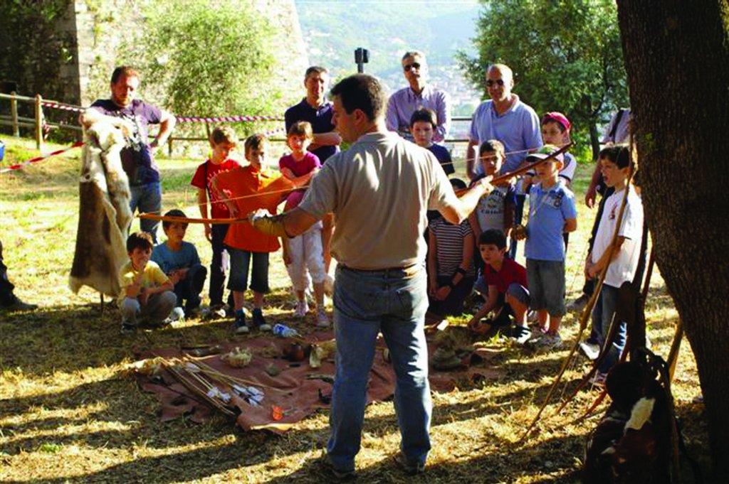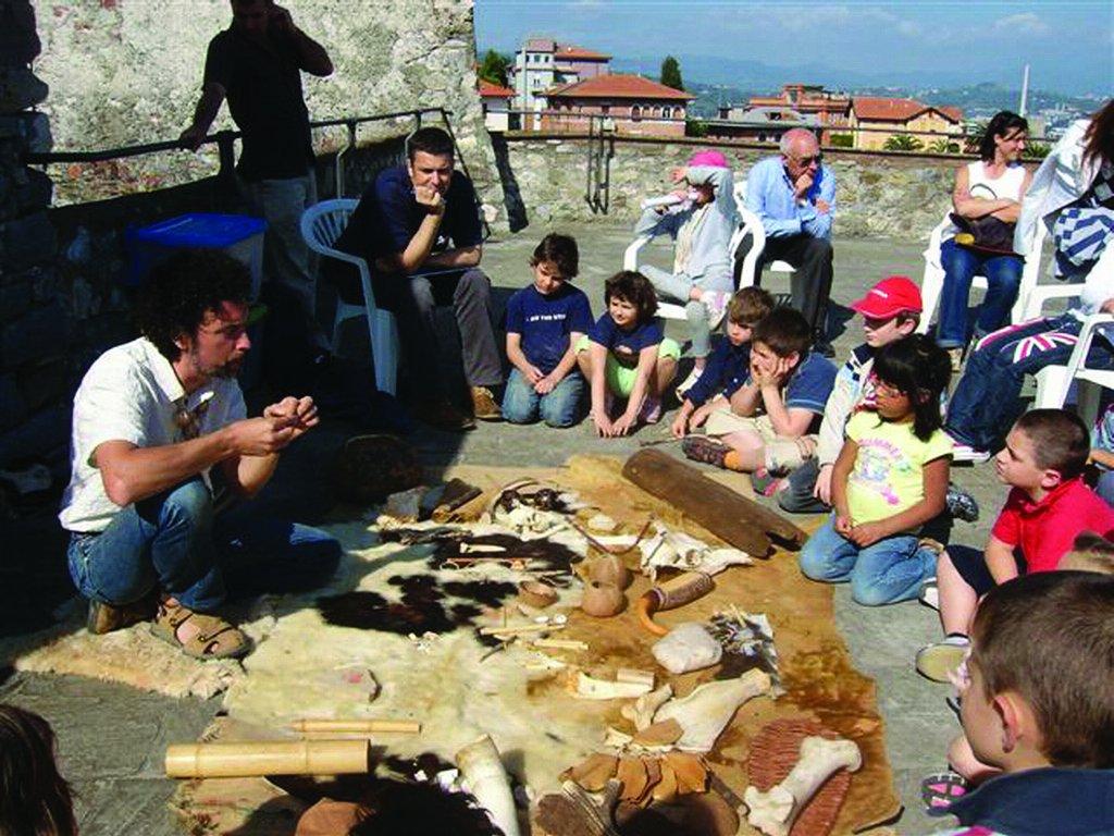 As a result of this growing awareness of the potential of experimental archeology as a vehicle to disseminate prehistory, we devised the event in 2005 and also exploited the potential of the castle park where it is generally performed. Thanks to the participation of special technical operators, most of them graduates in archaeology or from open-air museums and archaeological parks, the festival offers activities that are increasingly diversified. Today Paleofestival is a two-day event at the end of May where activities for both adults and children are available: they can experience the initial ignition of fire, stone chipping, the use of a bow thruster, milling of cereals, animal slaughter, the creation and firing of pottery, weaving, rock painting, working horn, plant identification from seeds, use of primitive musical instruments, and copper and bronze smelting.