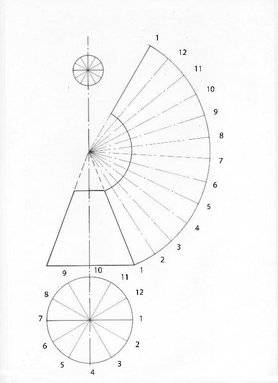 It is first necessary to draw the frustum to actual size as shown below.