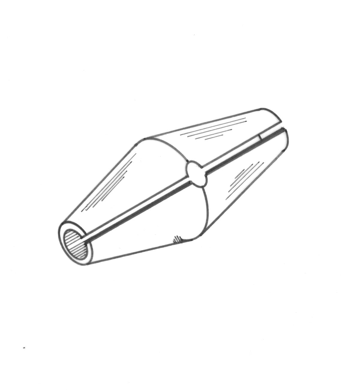 The shape of the plumbata weight made in the first set of experiments is that of two cones joined together at their largest diameter.