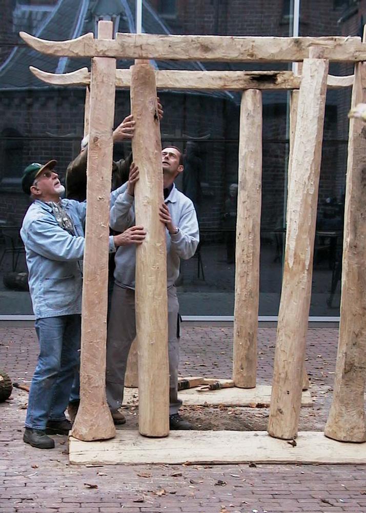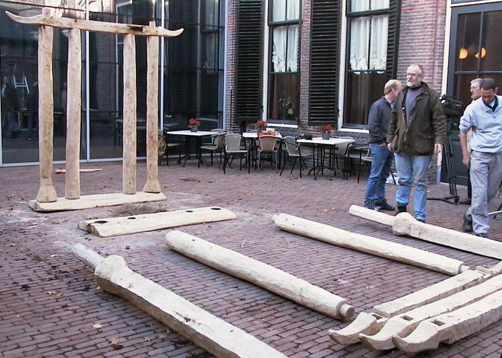 The Bronze Age temple of Barger-Oosterveld (about 1475 BC), which was found at the end of a bog bridge, has also been reconstructed using the tools that the builders of the original temple may have used. The temple was destroyed at some point and was incomplete when found. Because we rebuilt it, we now know that its size was 2 x 2 m and consisted of eight oak poles that rested on wooden boards. Of course, there often are several solutions to a problem. For example, there are two different reconstructions of a Stone Age stone-drill based on experiments that show that both were possible.