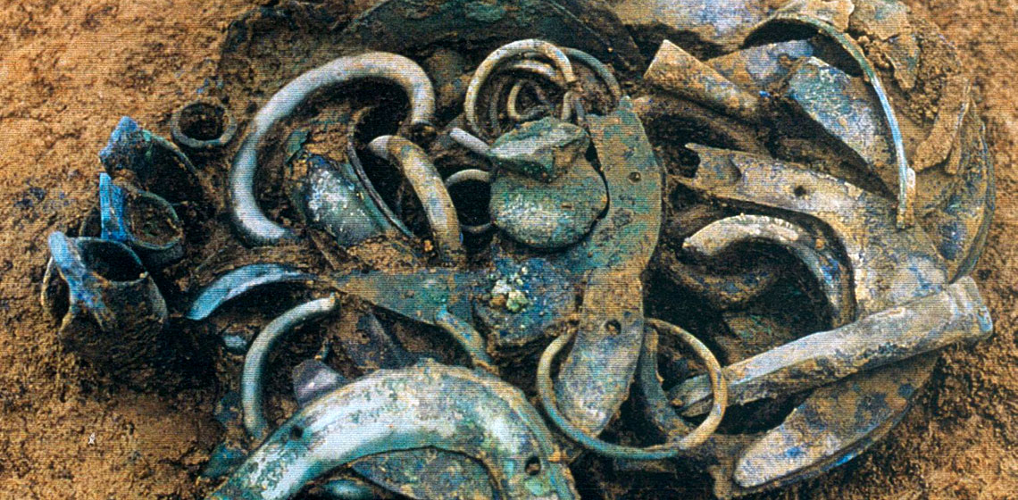 ***The hoard of Farébersviller (Moselle, France) was discovered in 1991 during rescue excavations (See Image above). This set contains 130 "bronze" artifacts, which date to the Late Bronze Age (8th century BC)...