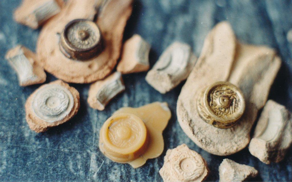 Bjarne Lønborg, Denmark, presented an idea to explain the division of ceramic moulds into two parts. Instead of regarding this as evidence against lost wax-technology, it could be seen as a way of making air vents. The thin space between the parts of the mould could have been created by isolating the halves with grease during the production of the moulds, in order to obtain a narrow space for the escape of emerging gases when pouring in the molten metal (Lønborg 1986,80f).