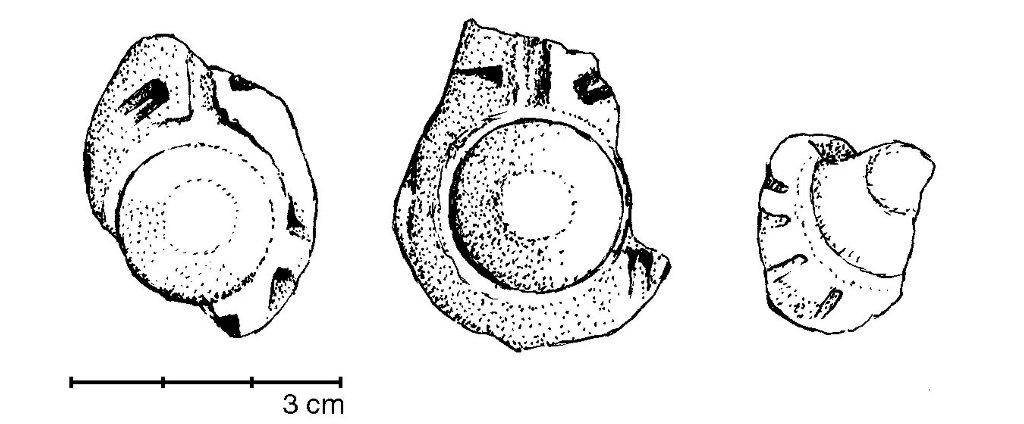 At the workshops at Helgö near Stockholm, 526 fragments of moulds for copper alloy clasp buttons were found, dating to the Migration Period. They were analysed by Kristina Lamm in the excavation report (Lamm 1972).