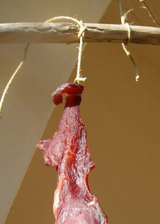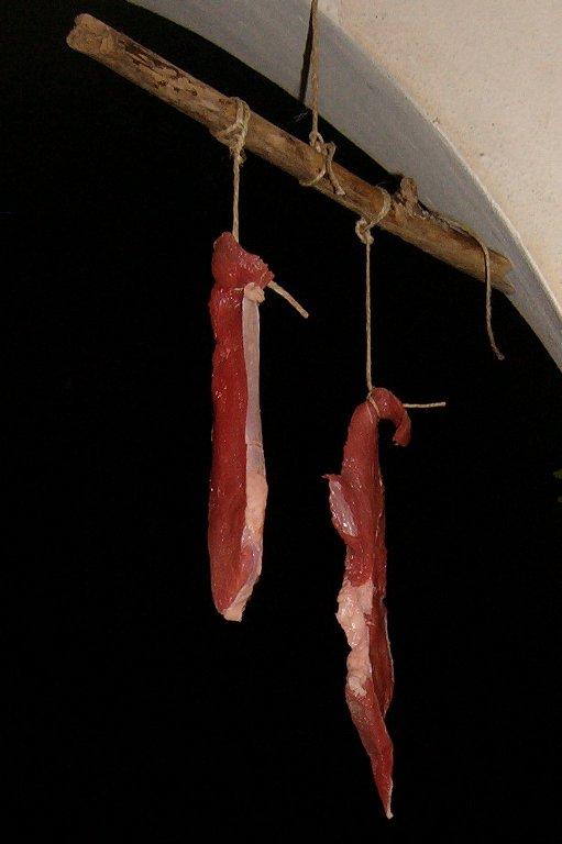 We must not forget that, until a few years ago, people in the countryside survived with no refrigeration. It is not so hard to think you could dry the meat still employing only wind and sun. The variable element of the experiments was the weather. The spring progressed and the weather became increasingly difficult to dry the meat.