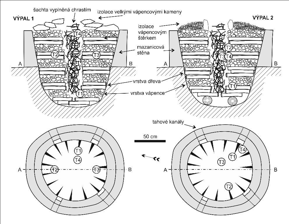 In 2006 the remains of two lime kilns from the Roman Empire period were discovered in Tuněchody near Chrudim in the Czech Republic. These finds became the object of a detailed multidisciplinary research project resulting in hypotheses on the use of the kilns. Based on these hypotheses experimental research was designed (Thér et al. 2010). The detailed results of these experiments will be published elsewhere. The aim of this article is to share the experience with basic technologies of lime burning that we can assume to have been used within the context of the Roman Empire period and that can be theoretically used in pyrotechnical structures from the Roman Empire period known in our region.