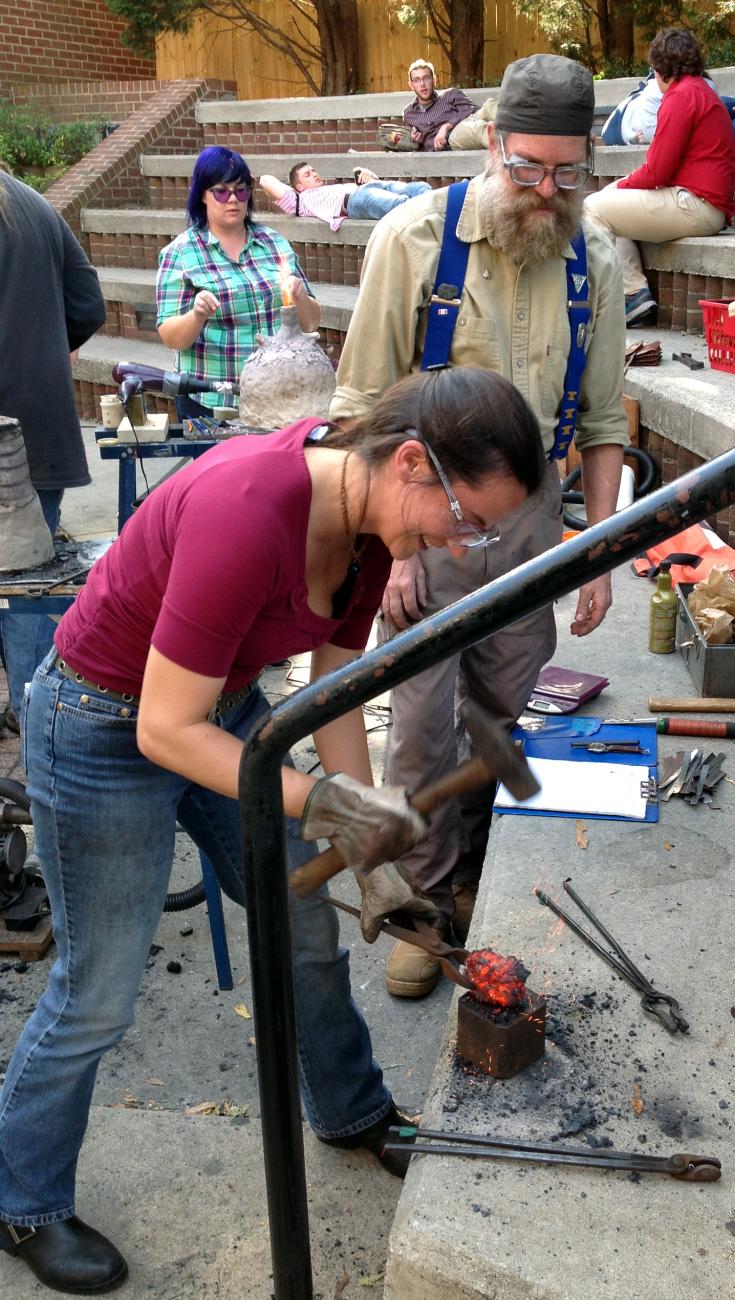 The hands on workshops were an obvious draw for the participants. Two of these definitely stood out. Neil Peterson's demonstration of a possible Viking Age glass bead furnace allowed individuals to make their own glass bead. Almost everyone at the conference tried their hand at doing so.