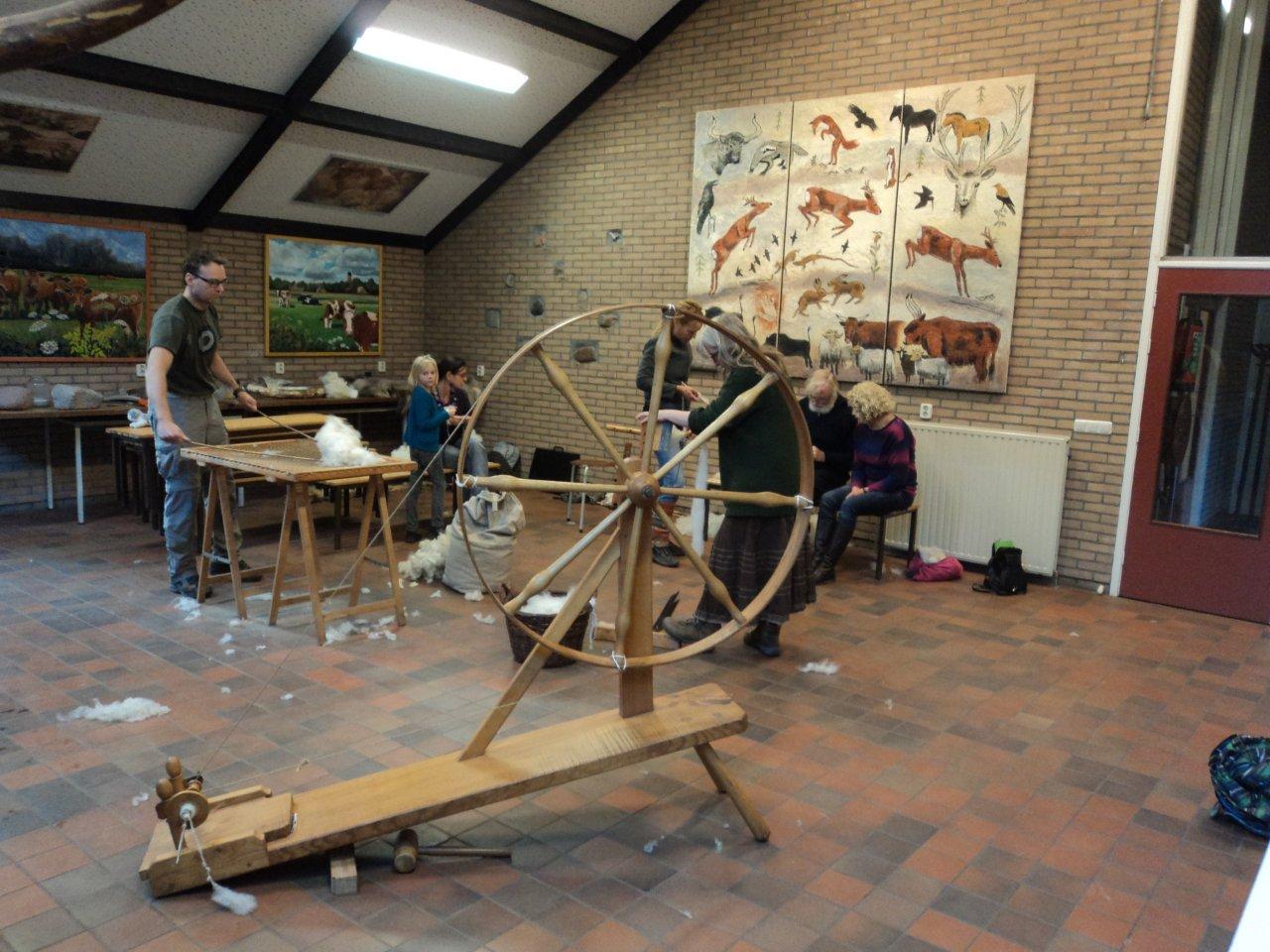 There were three rounds of simultaneous workshops over the two days. Some of the workshops took place during two or all three rounds, like medieval wool working (Toon Reurink) or ceramic pot making (Marije de Mol). Because there were five simultaneous workshops, it was impossible to witness all. Ernest Mols did some bronze casting with a large public, the way he used to do this with pupils. This, of course, requires a special approach. When later Jeroen Zuiderwijk also did a workshop on bronze casting, he showed a very different approach – great to see such a span of possibilities! Flint knapping was also a subject with several sessions, one by Tom Zoomer, the other by Ton van Grunsven. The flint knapping workgroup of the VAEE is quite active, and this weekend offered the oldies a chance to work together, while newbies could learn the very basics. Yvonne Ording offered a workshop in bone flute making as well as one on working bone & antler.
