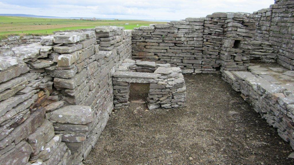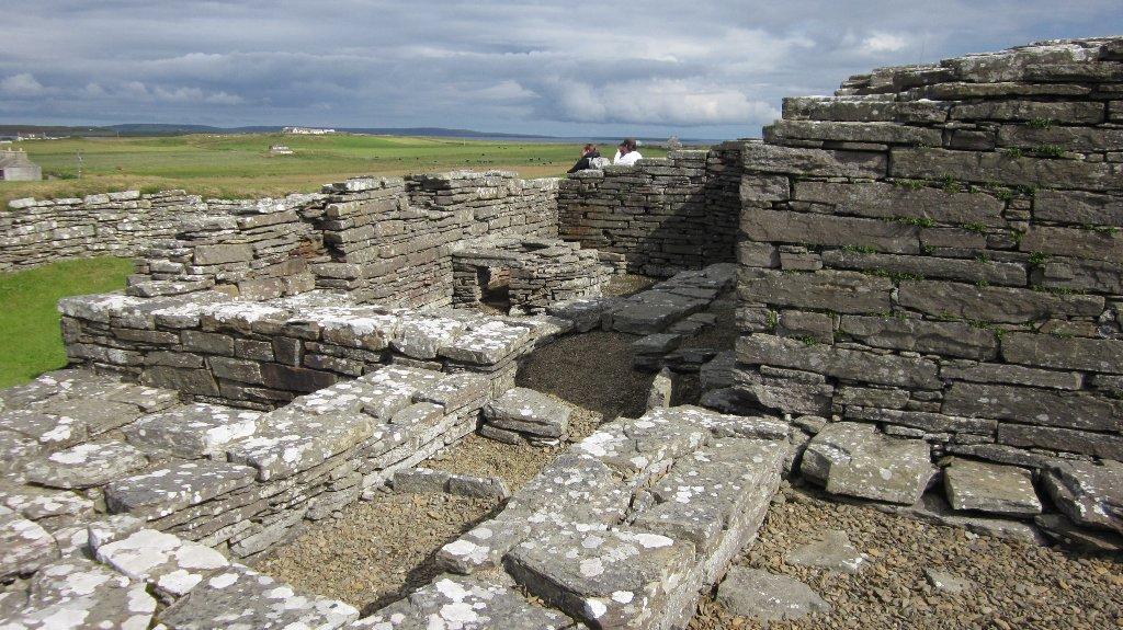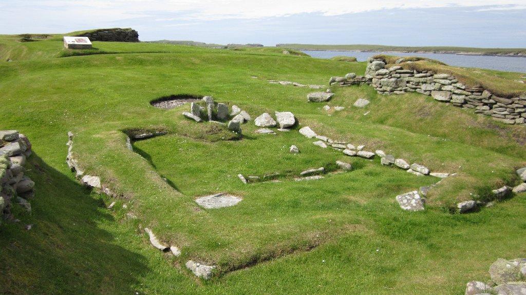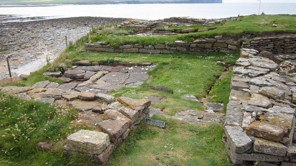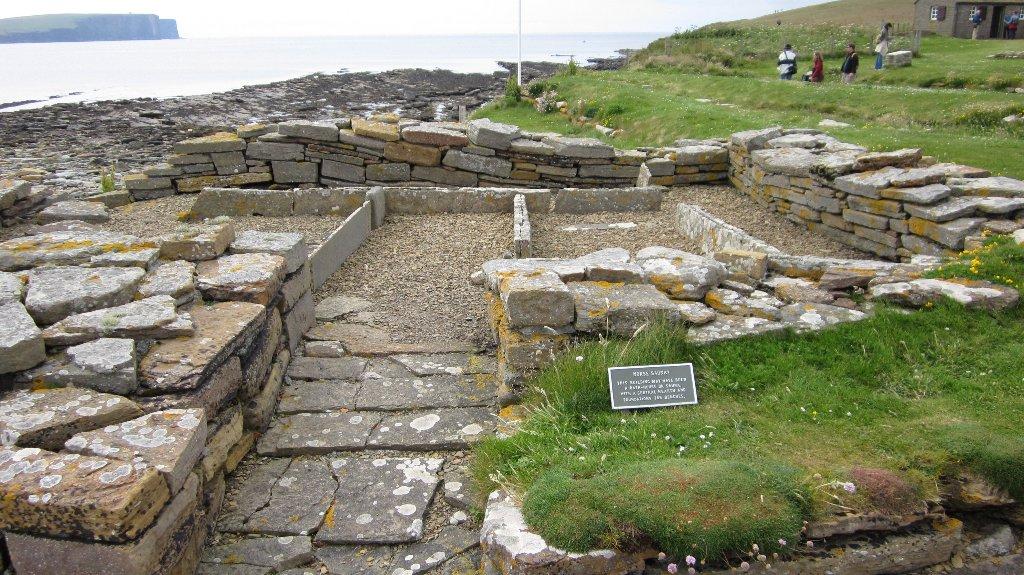 There are the remains of a large Norse settlement on a tidal island off the north coast of Orkney,