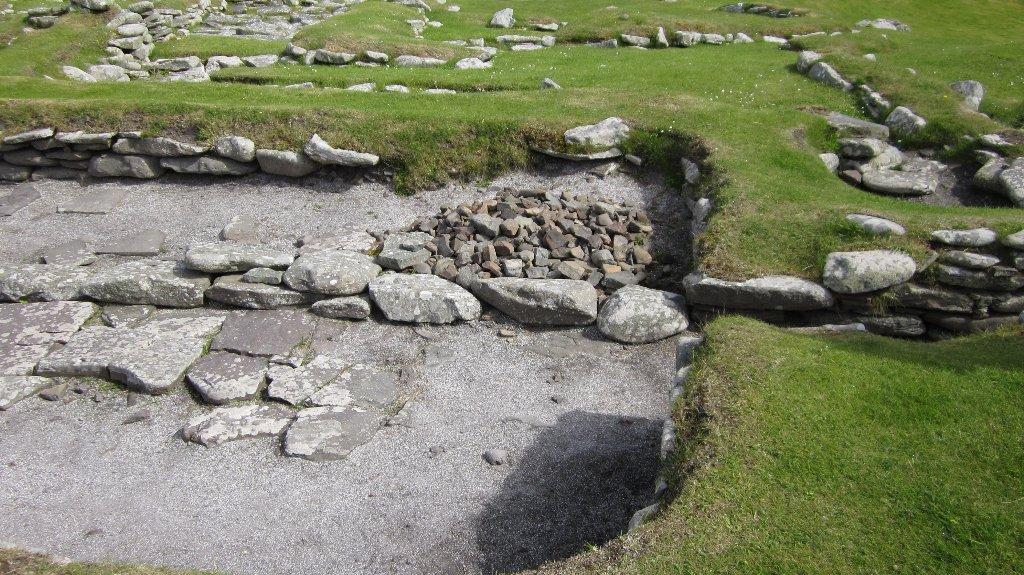 Fire cracked rocks are found at many Viking sites. For example, there are piles of them around the drinking hall at Jarlshof, the Norse settlement on Shetland (See Figure 5). They are so commonplace, at sites dating from Neolithic to Viking times, that they are often interpreted as domestic debris, pot boilers or as archaeological evidence for a bath house or sauna. They are, however, good indicators for a facility that was used for the brewing of ale. In Norwegian Iron Age and Medieval archaeology, these fire cracked rocks are referred to as bryggesteinslag or brew stone layers.