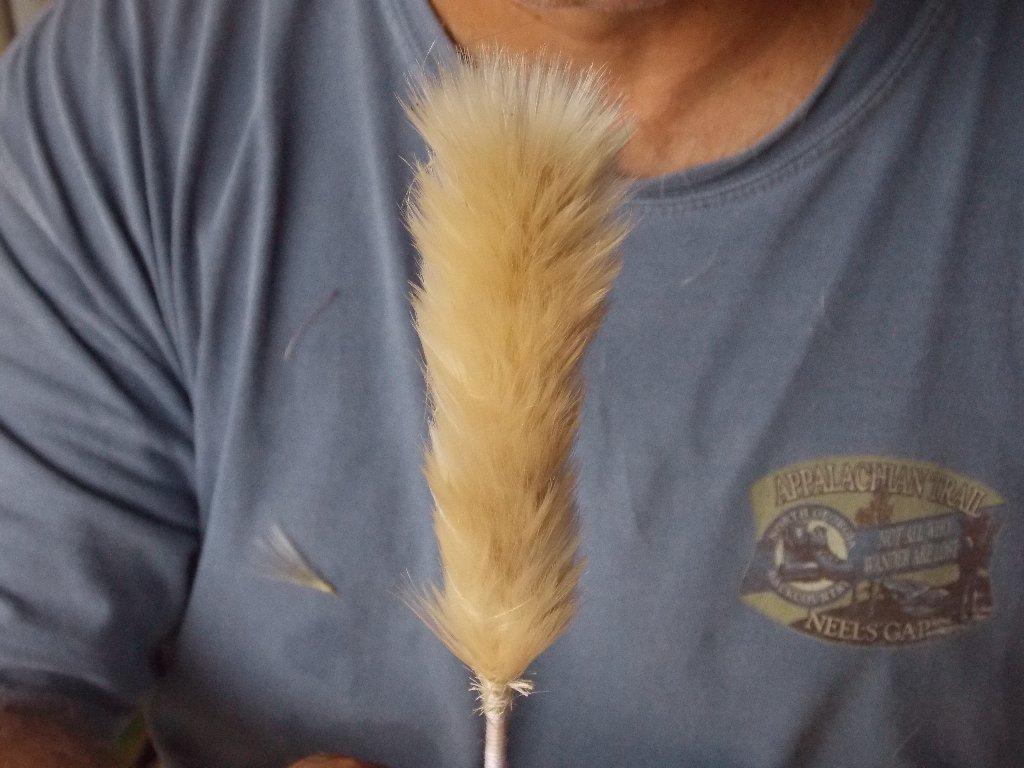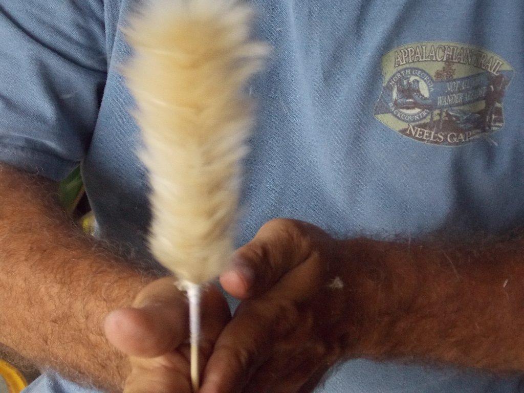 Dart rolling by a master happens quickly and looks very easy to do. Realize when you are watching someone do this that lots of practice caused this to happen. Although dart rolling is harder than it looks, with practice most people can become proficient at dart rolling. In the Southeast, thistle is literally everywhere and if someone takes the time to gather a few hundred heads, you can easily become good at this skill in a few weeks. Not only can a master dartmaker match the dart to the bore of the blowgun, but can also make the thistle length the same on every dart. I can easily produce a dart in about a minute and have seen some Cherokee dart makers produce a dart in about the same time. Realize that this comes with rolling thousands of darts.