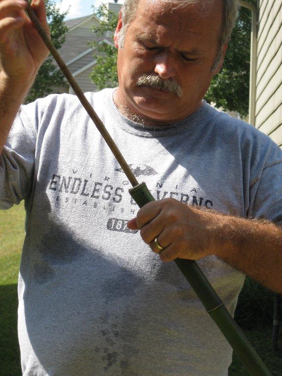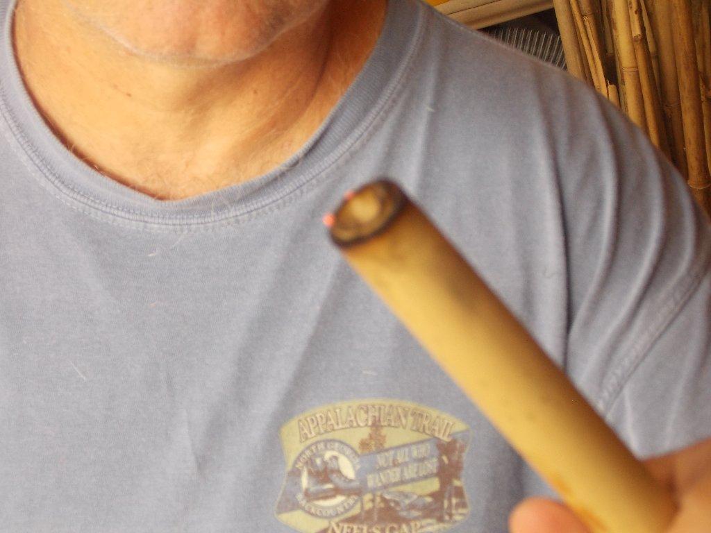 To finish the blowgun, you cut it to length. I always leave a joint for my mouth piece and usually leave a joint on the muzzle end too. If you cut the joint off of the muzzle end you will not make a mistake and put a dart in the wrong end of your blowgun, but the joint on both ends of your blowgun makes your blowgun stronger.