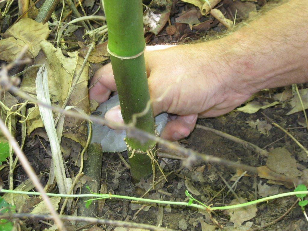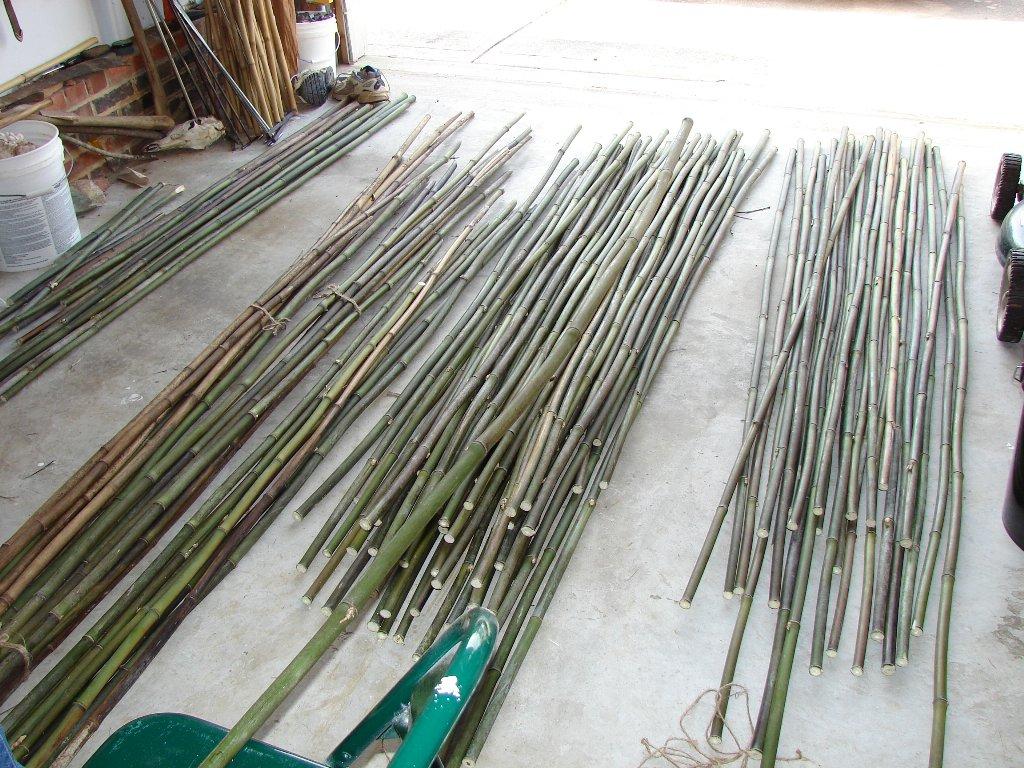 After the cane is harvested, I bind the cane tightly to prevent warping when it dries. I have read accounts of hanging weights or stones from the cane to reduce warping, but I have seen little advantage in this. If you bind the cane tightly, you should prevent most warping.