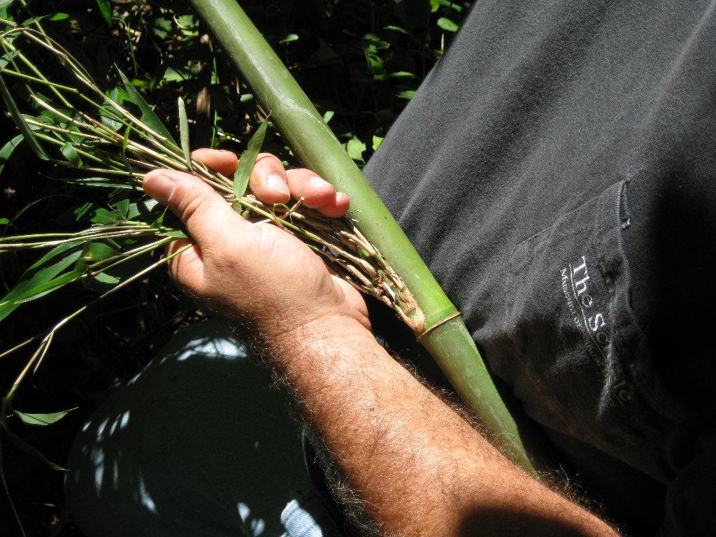 Another problem is that non-native bamboos are taking over rivercane habitats. You will also find hybrids of bamboo and rivercane in your search. Although these will work, rivercane works best. Most bamboo has two leaf shoots coming out of their joints. Rivercane has one leaf shoot coming out of the joints and these alternate coming up the plant. The angle that the leaves are coming out of the plant is also a clue. The leaves of cane come out of the stalk at about a 15 degree angle and bamboo leaves come out at about a 45 to 90 degree angle.