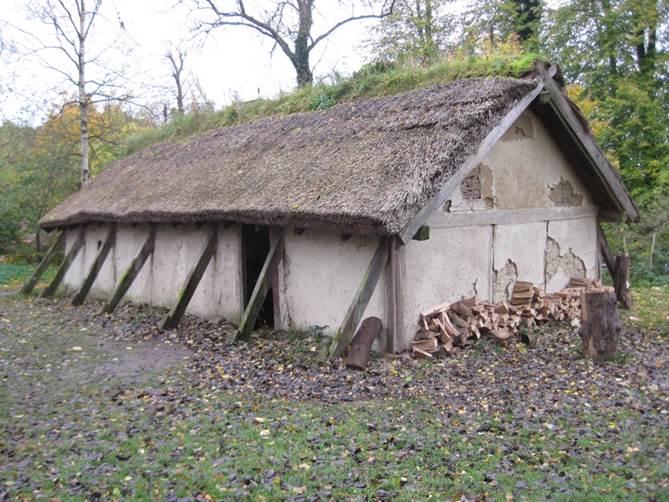 The two houses used in the experiment are both reconstructions of a town house from Haithabu [Hedeby], Germany dated 870 AD. The house was discovered almost intact albeit with the walls fallen in, but nevertheless showed the outline of the walls, fireplace, oven, plateaus et cetera, though the roof was not found in the excavation (Roesdahl 1987, 51). The first house was used from 24 October to 28 December 2011 and was built in 1972 at Moesgård Museum (House 1) (See Figure 1) while the second house was used from the 6 February to 16 April 2012 and had just recently been finished at Bork Viking Harbour (House 2) (See Figure 2). House 1 is located on the east coast of Jutland, while House 2 is on the west coast of Jutland, both in Denmark.