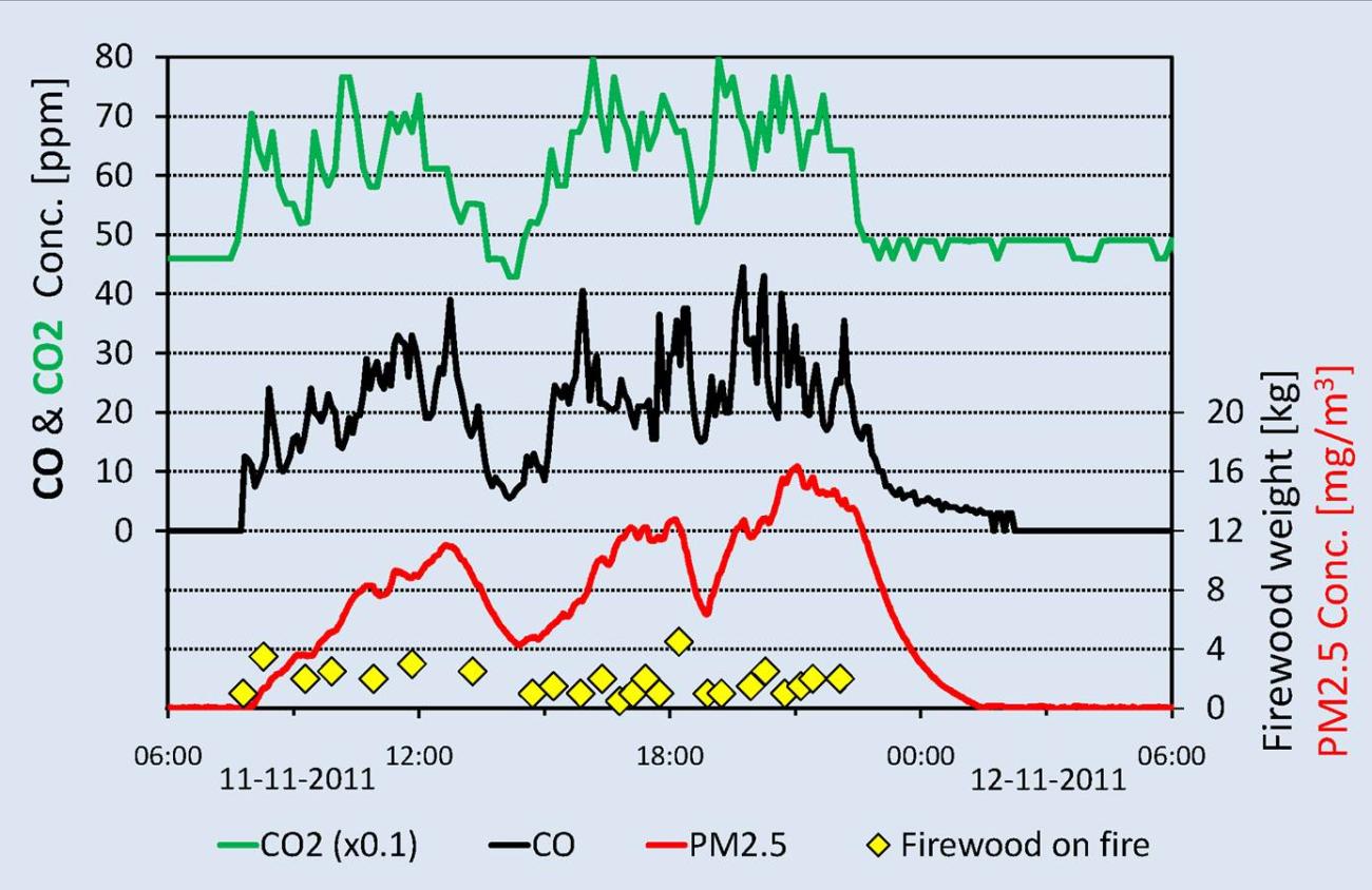 Often the perceived conditions mentioned in the questionnaires supported the measured conditions in the houses, showing when it was least unhealthy to stay inside the house, where the air quality was dominated by wood combustion products. The main health risks stem from fine particles (PM2.5) and carbon monoxide.