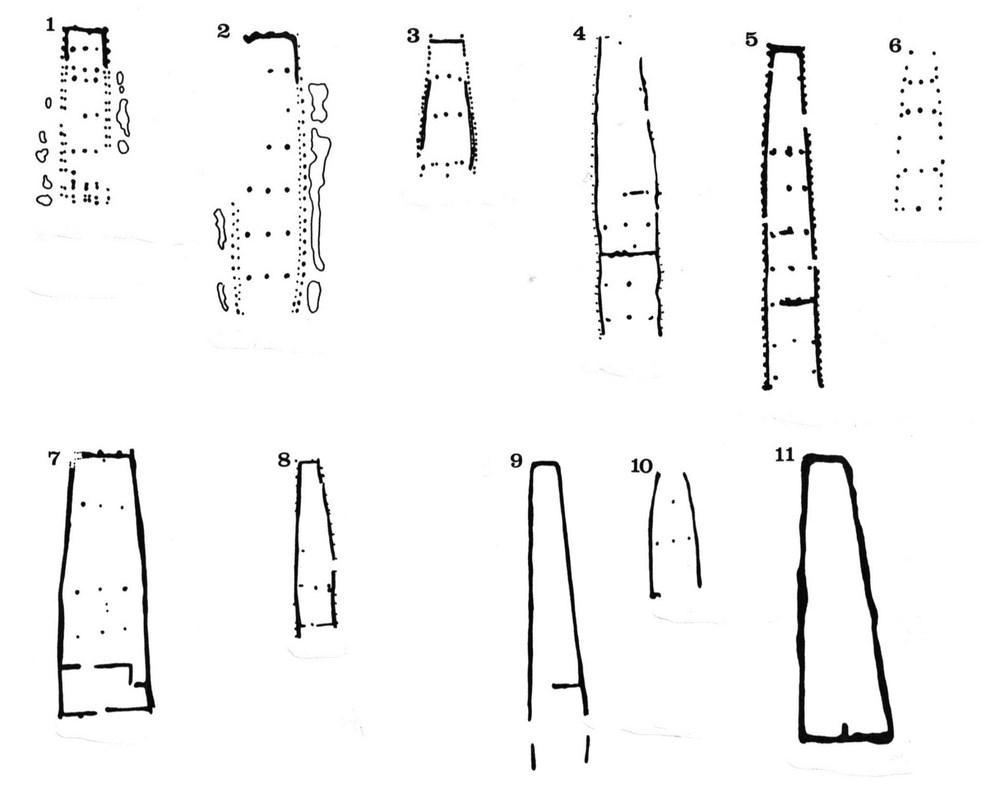 There is another configuration of posts that brings the 'Y' to mind. This is a construction of three posts in which the post located closest to the north-eastern wall - or the northern wall - is displaced towards the rear section (See Figure 10.4).