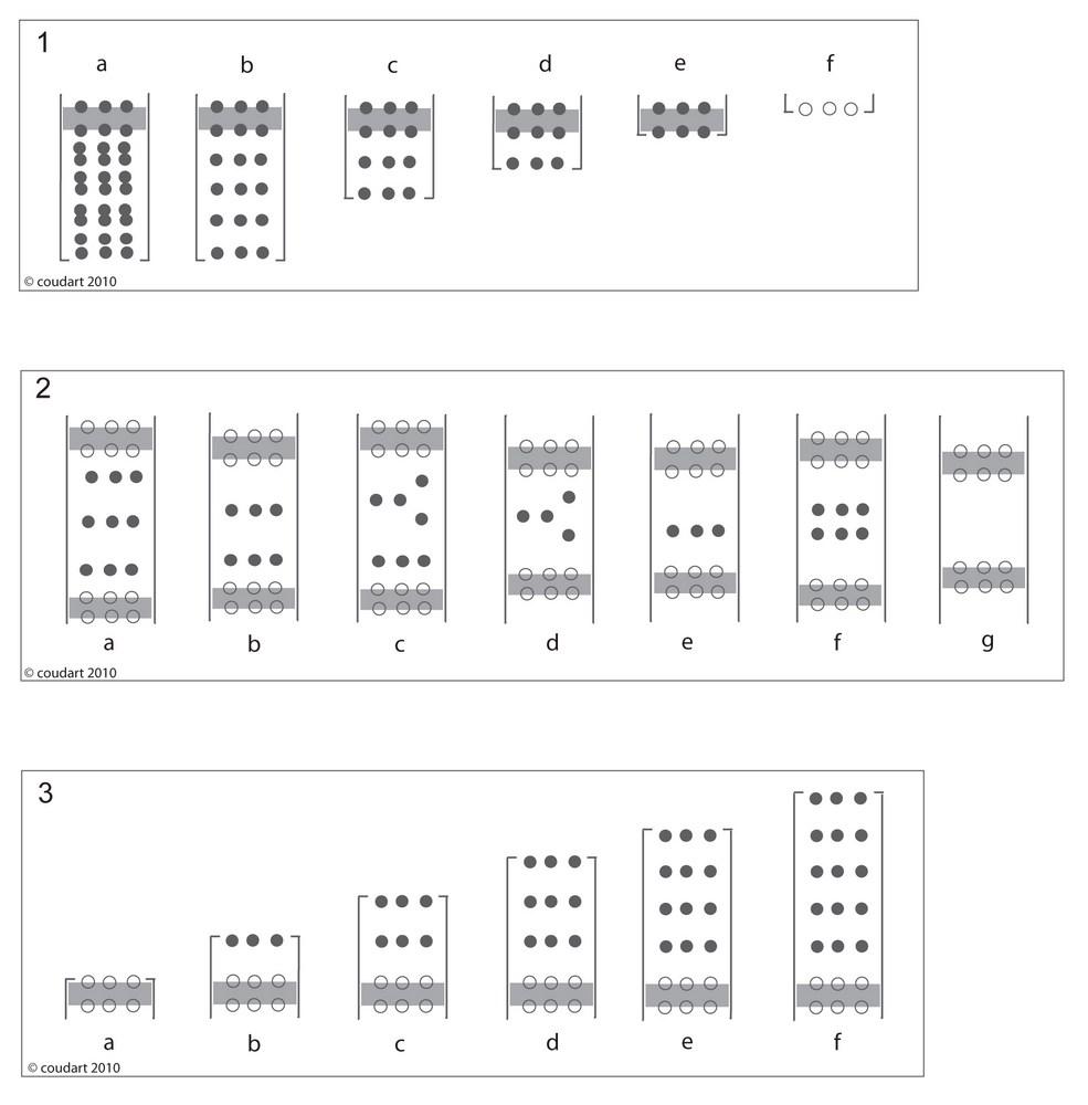 The most prominent are one unit, two unit and three unit types. The fact that the first one occurs relatively frequently in the later periods contrasts with the occurrence of large numbers of the third category during the early periods.