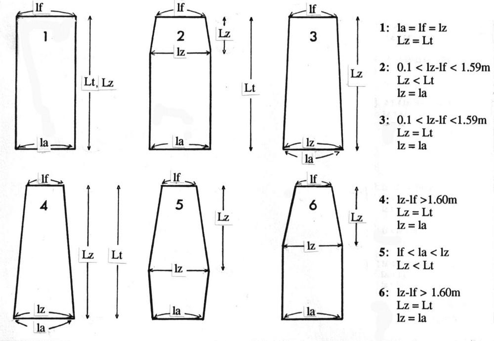 For an efficient design, the angle x cannot be too small, but it cannot be very large without threatening the construction's stability itself. The Danubian people were aware of this limit and took it into account, playing with the permissible margin of the angle x, and thus choosing between the different types of ground-plan, so as on the one hand not to exceed the maximum width permitted by construction techniques, and on the other to have a wide enough range of lengths at their disposal.