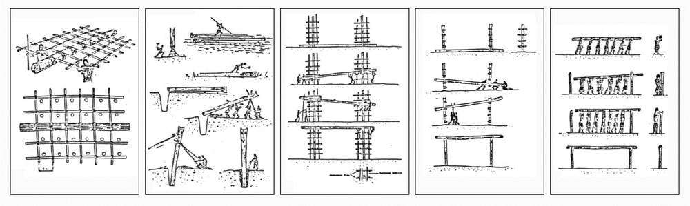 But such a construction is so alien to the thinking of the industrialized world that transverse tie-beam reconstructions of such buildings continue to be on public display, such as those in the open-air museum of Beaune in France (Archéodrome) or at Ansparn in Austria. Nevertheless, the longitudinal linkage is found in a large number of traditional Melanesian constructions or in some barns in the Mediterranean world.
