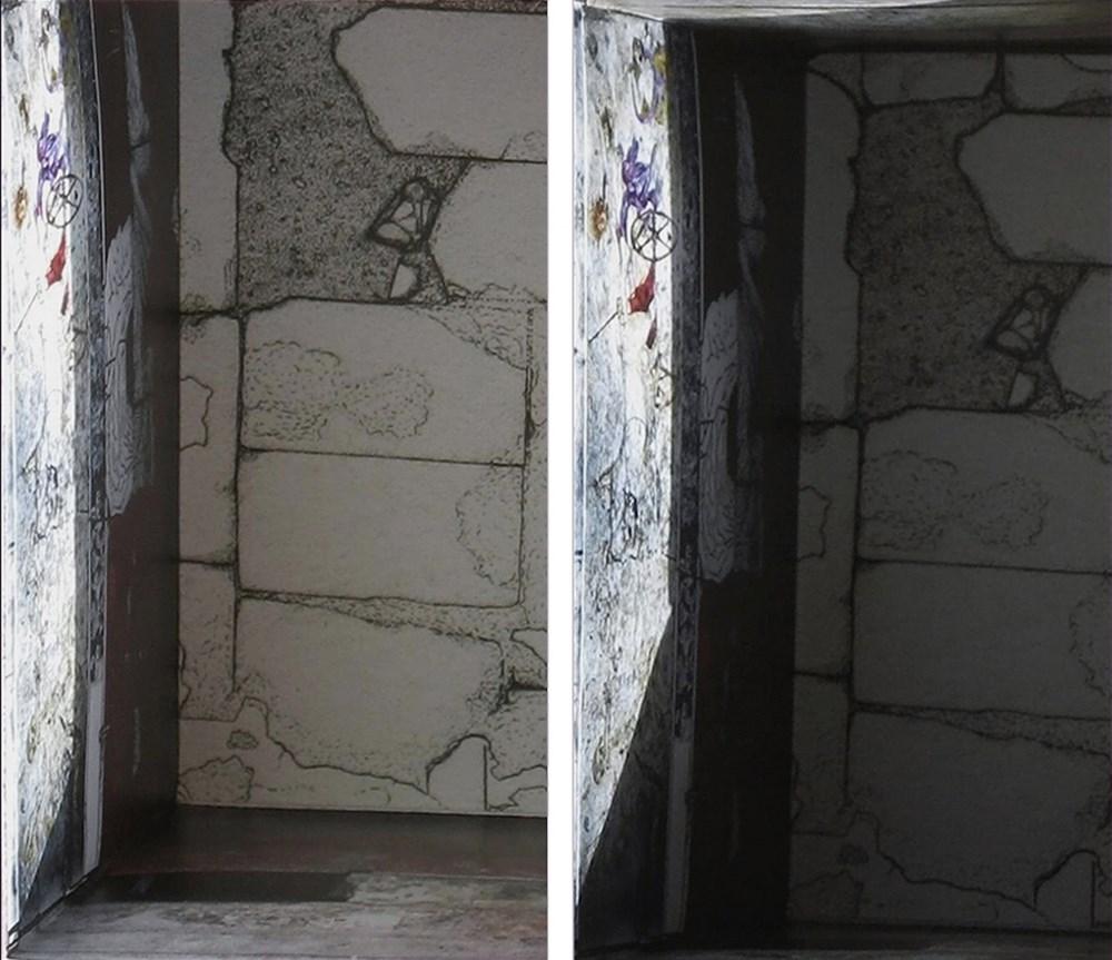 - a mural that utilizes three of the four walls of the construction.