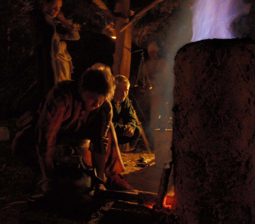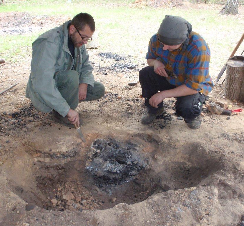 The Seminar program included performing two smelts in furnaces of different shaft heights using different types of air supply for each one: artificial and natural draught. For this purpose on Friday 4 October one of the furnaces was prepared,and part of the second furnace shaft was built as well. Also, the ore had been roasted and other materials and equipment necessary for further actions have been collected and stored.