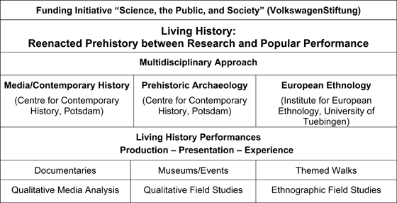 First, our project examines the production of living history, particularly in its relationship to academic history, which includes an analysis of didactical concepts, reenactorsâ professional and personal backgrounds, and their motives. Second, an analysis of the presentations and performances themselves, their narratives, visualizations, realizations, and staging techniques is provided. Third, the project includes an investigation of the experiences of participants and viewers, their emotional processing and involvement.