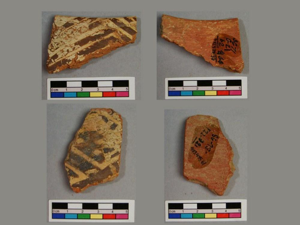 Monochrome painted pottery constitutes the dominant group among the painted ceramics (See Figure 3). Most of them were painted only on the outside with geometric motifs, though a few examples with paint on inner or both sides are present. The paint was usually thick and in relief, with a colour range from brown to red. Before painting, the surface could be slipped with a buff slip, or it could remain without slip. The other surface was slipped, either single or double. The latter would be a red or brown slip over a buff one (Young and Levine 1974, 3-4; Levine and Young 1987, 21).