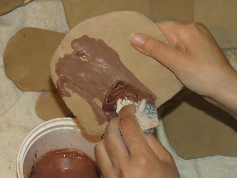 3. Applying red slip to the inside surface