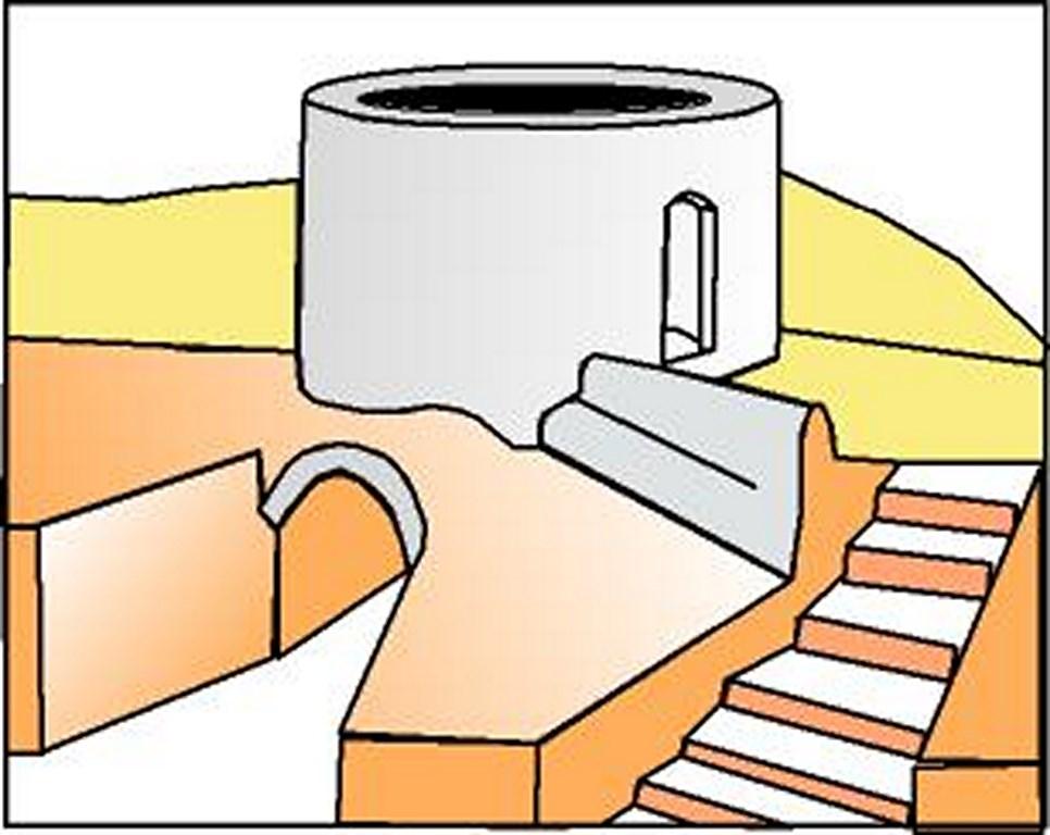 Applying the finishing touches to the praefurnium by sealing the bricks of the upper rows of the corbel arch was completed prior to the firing. It must be noted that thelength of the praefurnium is hypothetical because it was not preserved in the original Iberian kiln.An average length, however, was established from otherexamples.Stairs were also shapedconnecting the working area with what the archaeologist interpreted as the door of the firing chamber were vessels where loaded and unloaded (See Figure 16).