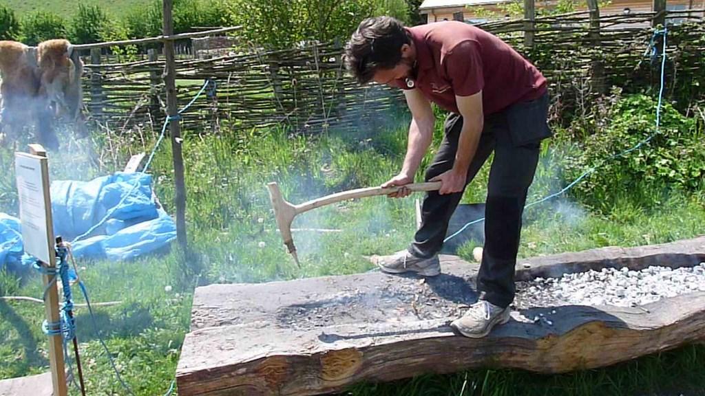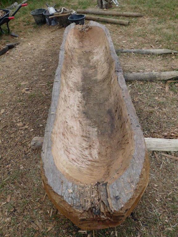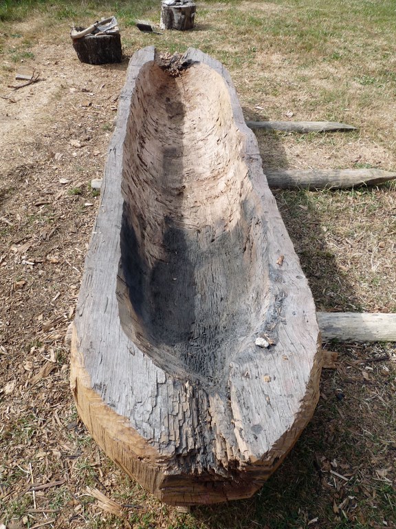 Several methods of burning and chipping were used in order to find the most efficient way of constructing the boat. The first method was to set a fire along the centre of the boat and allow it to burn out completely before removing the burnt area with the bronze tools. This proved to be the most inefficient method used as the fire could only penetrate so much wood before it no longer had any effect on the underlying layer.