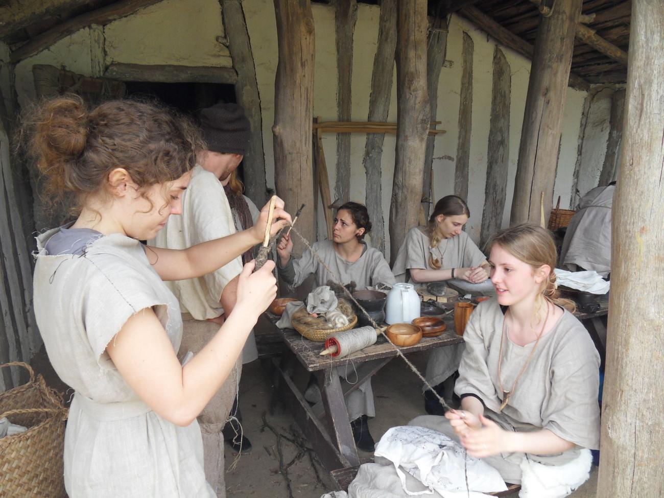 - Food. As important as every year, this group prepared lunch for everyone. Only seasonal and archaeologically verified food was used. Nonetheless every day different dishes could be presented. Cooking, barbecuing et cetera. was carried out on an open fire, but due to the group size the main pot used was a metal one (in the years before, reconstructed ceramic pots like Funnel Beaker Culture pottery were used, but did not survive routine use or the cold winters in the house).