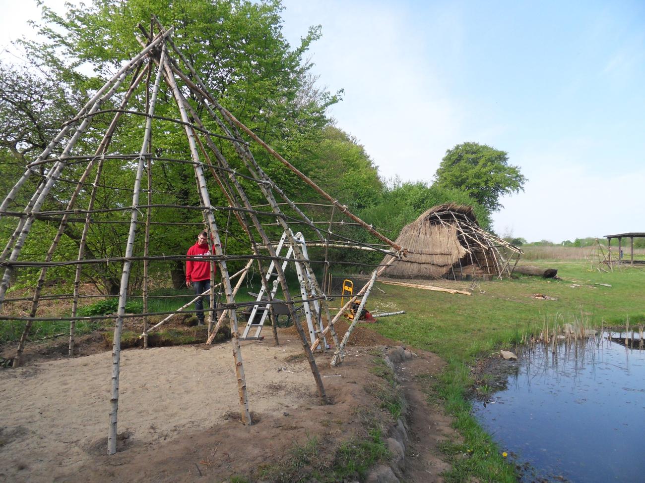 Two new huts in the Stone Age Park Dithmarschen in Albersdorf (Germany) were built in spring 2014 by the Experimental Archaeologist and Educator Werner Pfeifer with the support of some friends and with financial support from the Stone Age Park Dihmarschen and the EU co-financed project OpenArch.