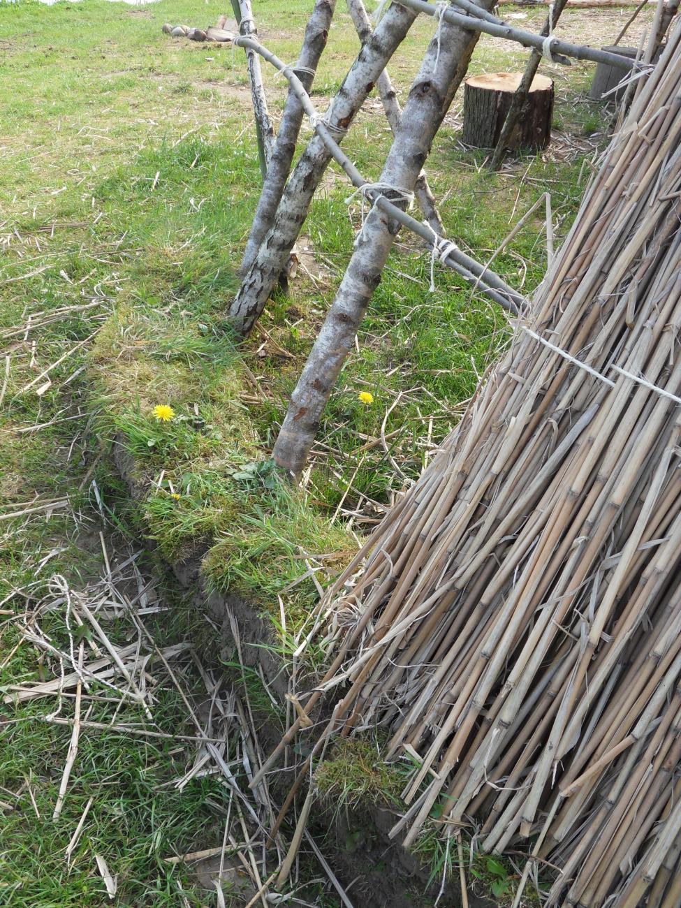This hut was dry from the start as we never used Miscanthus here. The roof was made completely with reed.