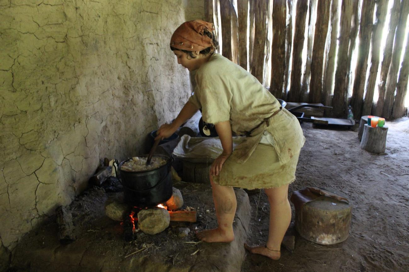 - Food. This experimental group is vitally important every year, but more so for an overall theme of daily life and feasting. This group prepared lunch for the whole group using only seasonal and archaeologically verified food. Everyday various dishes were presented, cooked and grilled on a fire fire, but due to the group size the main pot used was a metal one. Previous experiments had reconstructed ceramic pots like TBK pottery, but these did not survive the daily routine or the cold winters in the house.