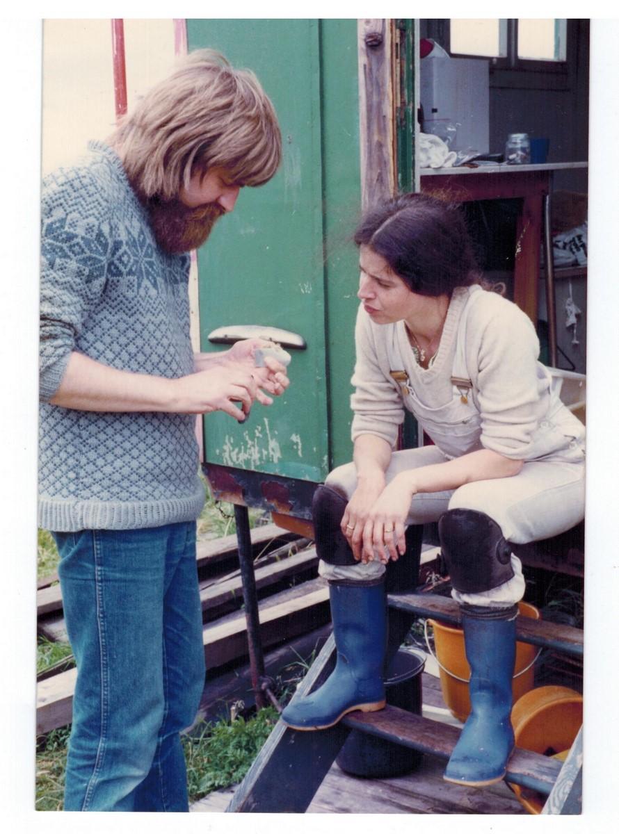 That's how it went. Students booked workshops, but weren't allowed to tell. That's when it started at the Kinnekulle Bay (Harm's place at the Eckernförder Bay). We destroyed tons of flint at the beach, where the professors couldn't touch us. We weren't allowed to call it a seminar, so we called it a beach party. At the university they said: we are used to thinking in a different way than you! These were the first little warnings, because I was “stealing” their students. I should have had my old sofa listed as part of the protection of historical monuments, because of all the illustrious backsides – students back then, but today international men and women of position and authority – who wore away the leather. In Germany, none of the top brass wanted me, so I got invited to Sweden, where another spirit prevailed; the spirit of Scandinavia. I showed Kjell Knutsson, today a big shot at the University of Uppsala, that you can read a whole story out of aflint flake. We had a lot of fun back then!