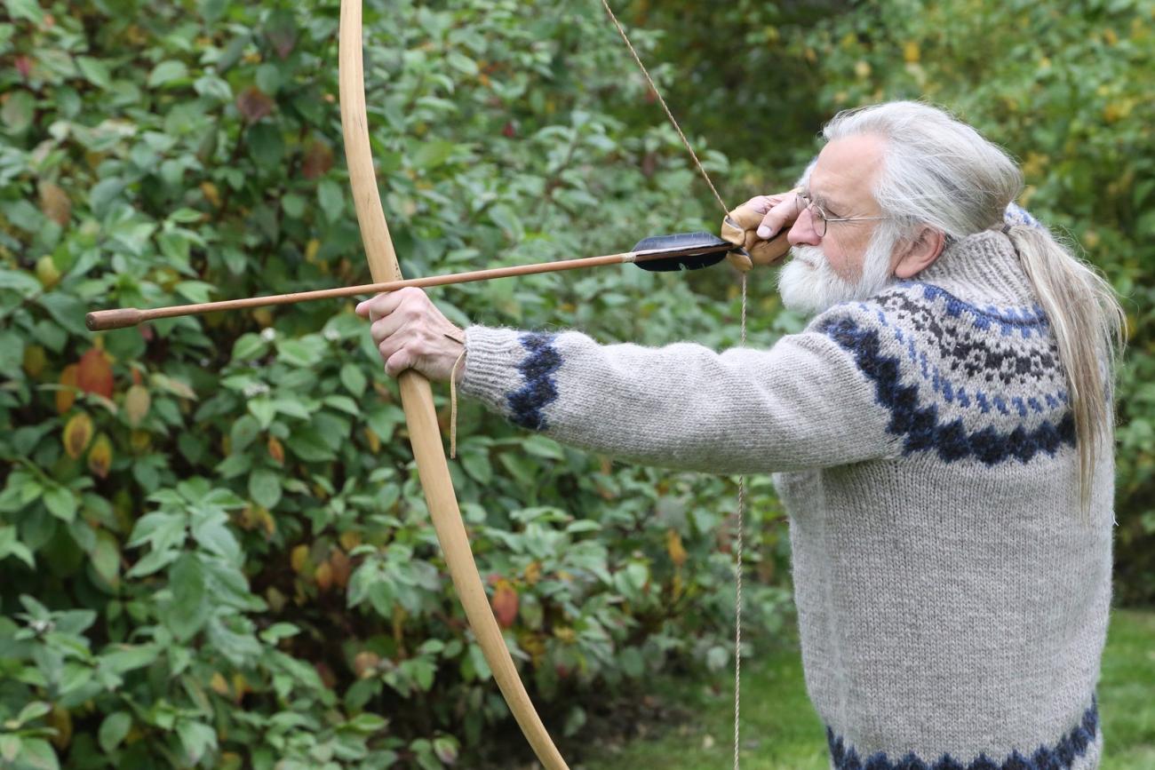 I tried to do my part for the archaeology. Often the media needs reconstructions, they want to see Stone Age techniques being done live. For example, when it comes to “Ötzi”, I was the man of the first hour – good Lord, what kind of nonsense was spread about this man: “They shot him while he was hiking, and then he pulled out the arrow under extreme pain!” I said: “Guys, “Ötzi” was wearing a backpack on top of his clothes. It is not that easy to get through all of that with an arrow. And where did the arrow hit him, which angle? I put the arrow in that angle next to you, Professor, and you try to pull it out. It doesn't work? How peculiar..!” My theory: the Iceman sat bent over and was eating, which we know thanks to his stomach content, when he was hit by the arrow. The arrow came from over here, it is a simple story, really (simulates the scenario). At an “Ötzi” congress, the reference list looked like this: Prof. Dr., Prof. Dr. Dr., Prof. Dr., ….Paulsen....Prof. Dr. Dr., Dr.... (laughs), and then an Austrian professor uttered that he was ritually killed with his whole equipment. I said to him that the arrows had a smooth surface where they broke and asked whether he had seen a ritually broken arrow before, which he denied. “That's a good thing”, I said, “over there you can see my reconstructed equipment and I will break one of my arrows ritually”. I almost made a complete circle with the wood before the arrow broke with a loud crack and the ends looked like two shaving brushes. “Why does this not fit in with your theory, professor?” I asked him and everybody laughed, but one. Naturally, you rub someone the wrong way – but I mean no harm, and I don't want to sound too arrogant, but sometimes all this twaddle gets on my nerves. I just want to share my experiences so that everybody profits from it and when fighting with colleagues and specialists, you have to be prepared to question your own theory and then make up in the end.