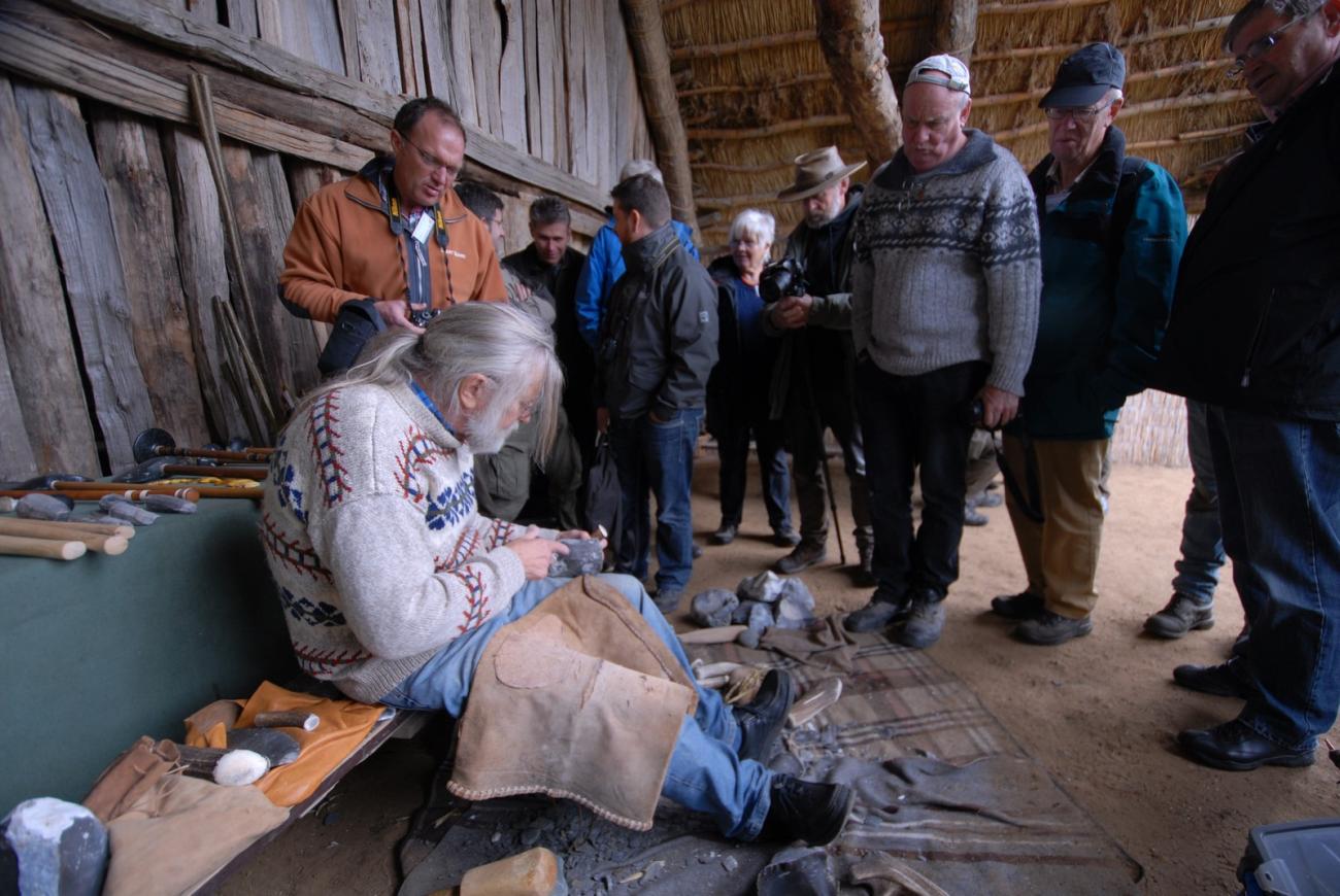 Let me put it this way: it was an attempt, but generally I don't support it. Naturally my whole heart was in the project, the people were incredibly nice and tried their best. We are still in contact with each other. But basically, it was my boss's wish to take on that job in the first place. Still, it was a nice experience and I could give a lot of tips. But even when I'm in Hjerl Hede, I don't try to be a Stone Age man. It is theatre, we want to show the people a certain picture of how it could have been back then. Sometimes you can put yourself in those people's shoes. In Denmark, they found a bunch of chips from making a dagger, with half of the dagger in the middle of the site and the other half, 30m away in the moor. As a flint smith you know exactly what drama happened there thousands of years ago. But only, because you can make such a dagger yourself and scream sh** a couple of times and throw that stupid thing into the corner, because the blow didn't hit.