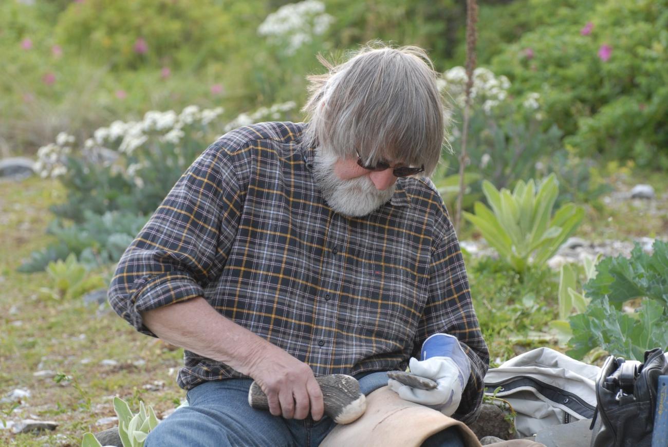 As early as the 1960s, there were many fascinating objects in the museum and that's why I wanted to study. But my grandma always said: “What good is the best academic title, if you don't have food?” I completed an apprenticeship as an electrician but after a serious accident, I was knocked out. When I was recovered, I wasn't able to work in that field any more. I started working for the Lübecker Museum as a general employee, sifting through the rubble of the cathedral museum, almost re-excavating it. Thanks to old catalogues, I was able to piece together some of the burnt stone tools. My fascination for stone tools was unbroken and even back then, I had started to experiment with flint. I took the bus – what a trip – to the Brodtener Ufer (riverbank), where there was not a single soul at that time. I brought back a whole backpack full of flint slabs. I learned the punching technique quite quickly; the blades were getting longer and more beautiful. I tried working on axes too, sharpening them on the sandstone steps of the stairs behind the house, which started to wear down. My father scolded me and asked what kind of nonsense this is, but after switching the sandstone steps, he let me be. The people in Lübeck liked that I was experimenting. Neugebauer always said: “Oh that's so interesting, you have to be careful not to make an original!” In 1967, Schloss Gottorf (Federal State Museum of Schleswig-Holstein) noticed me, but they weren't interested in flint knapping techniques. I kept myself busy with other things; towards the end of the 1960s, I made a K-axe from beautiful diabas, which I found on the beach. It looked like a cucumber and didn't need a lot of re-shaping, just polishing and sharpening.