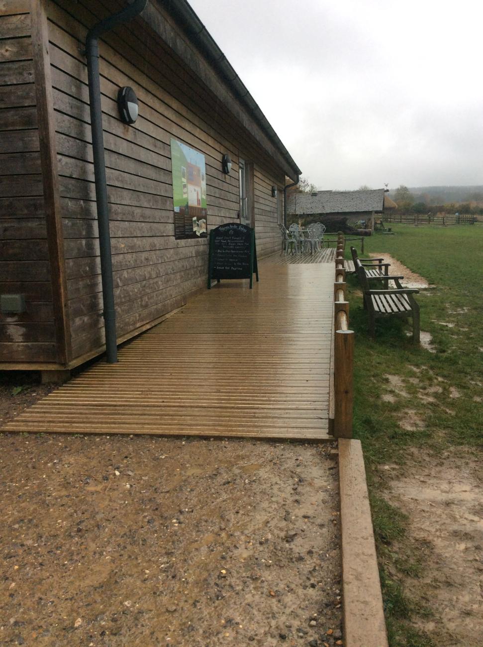 Three years ago, when our visitor centre was being planned, we were very clear that we wanted our site to be as accessible as possible for as many different people as possible. We wanted to make sure that everyone who wanted to visit was able to, and that there were no barriers here that we could have avoided. As a result, our visitor centre is accessible to everyone! There are automatically opening doors that operate at the touch of a pad. Both the entrance and exit have decking and a slope to enable wheelchairs and pushchairs to move freely. There is a disabled toilet in the building, designed for wheelchair access. The disabled toilet also has an emergency pull cable to alert staff in the shop to any difficulties. We also have a motorised mobility buggy, which is available for visitors who find the farm too difficult to traverse.