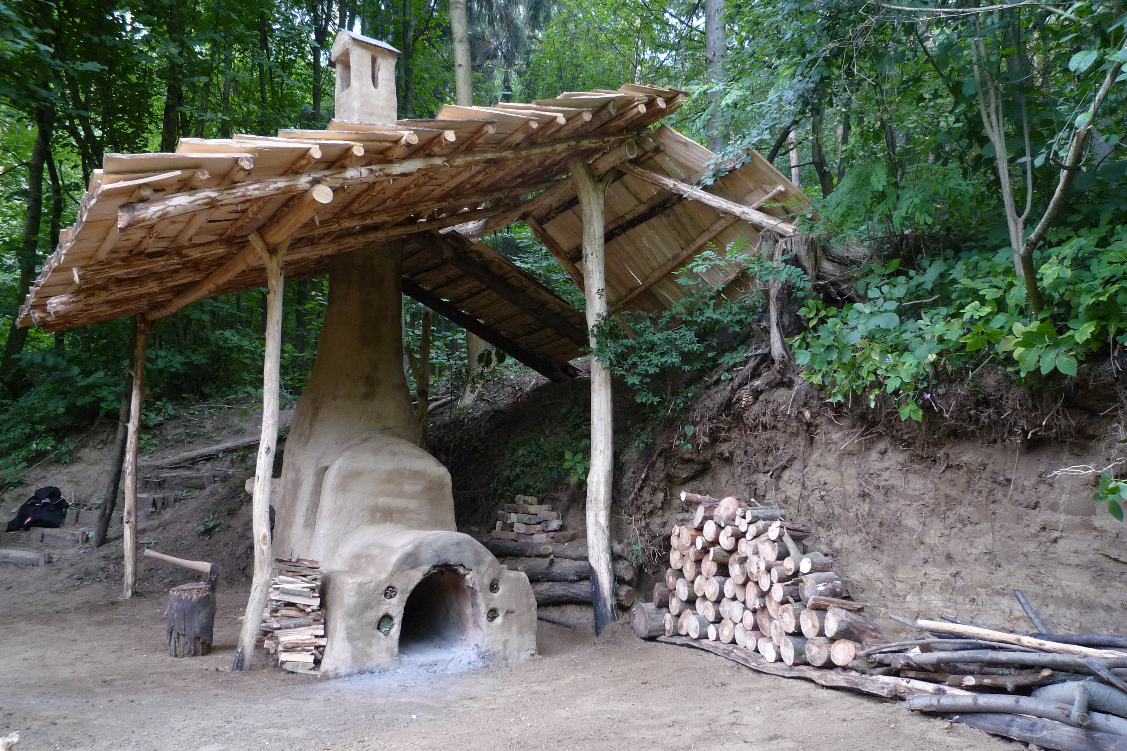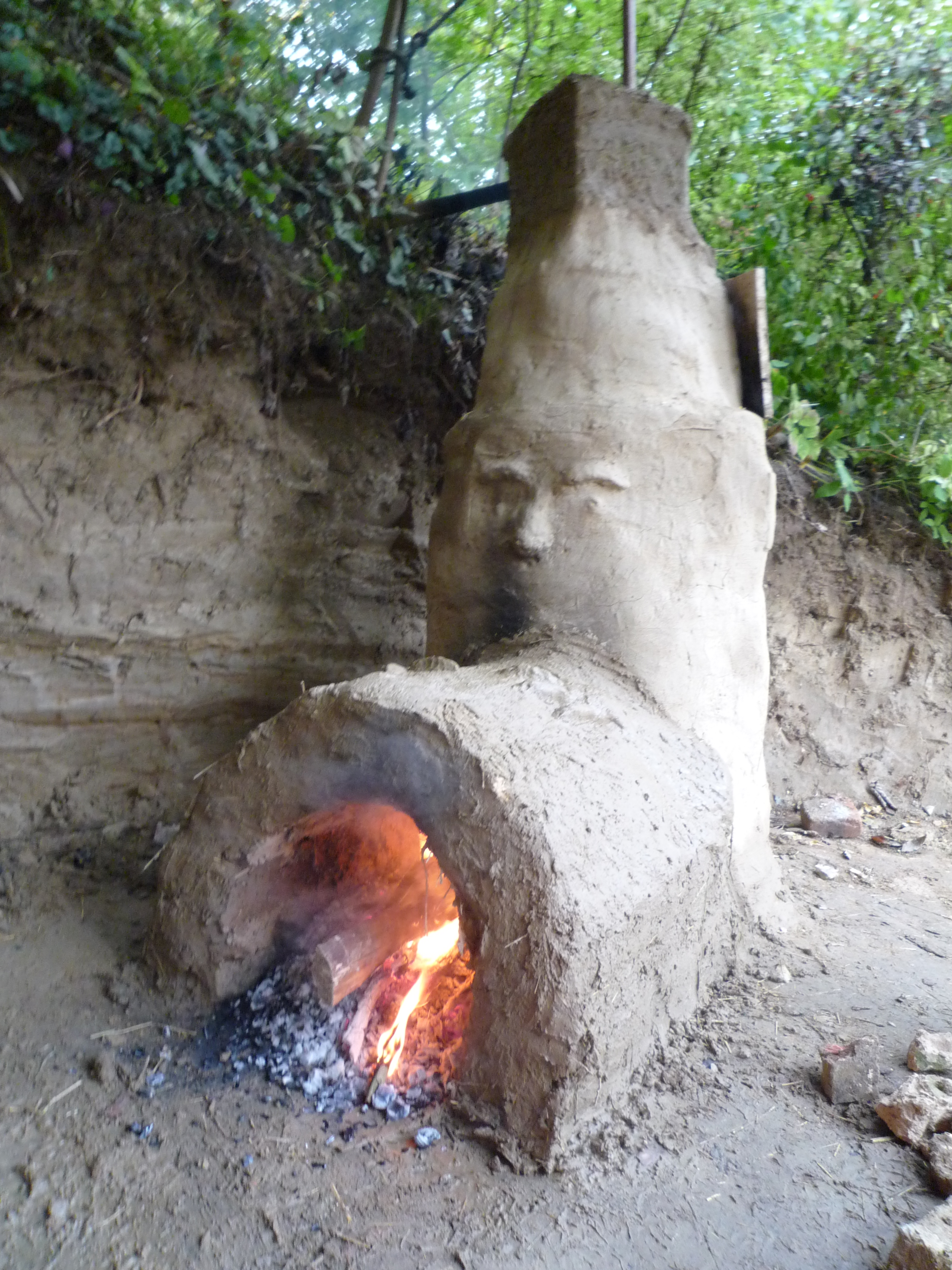 Both ovens were fired up in the course of an event. Once the necessary high temperatures had been reached it turned out that the ‘fritting oven”’ needed only about half of the wood that the big furnace consumed. The reason was that the furnace developed very strong suction due to the very tall chimney and therefore left a great deal of energy unused. In this attempt we utilised an altered mixture (See Table 1).