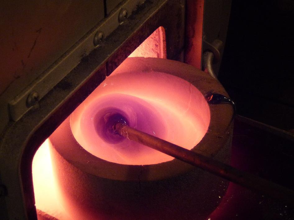 | 11:30 | The crucible is glowing, glass mixture is introduced |