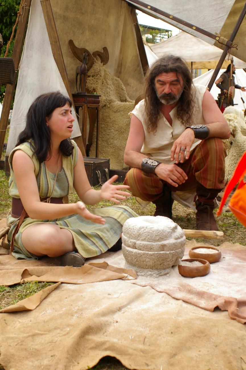 The activities provided were painting on stone, the making of Neolithic beakers, Neolithic archery, launch with atlatl, lighting a fire with flint, the grinding of grain on quern stones and weaving on a vertical frame.