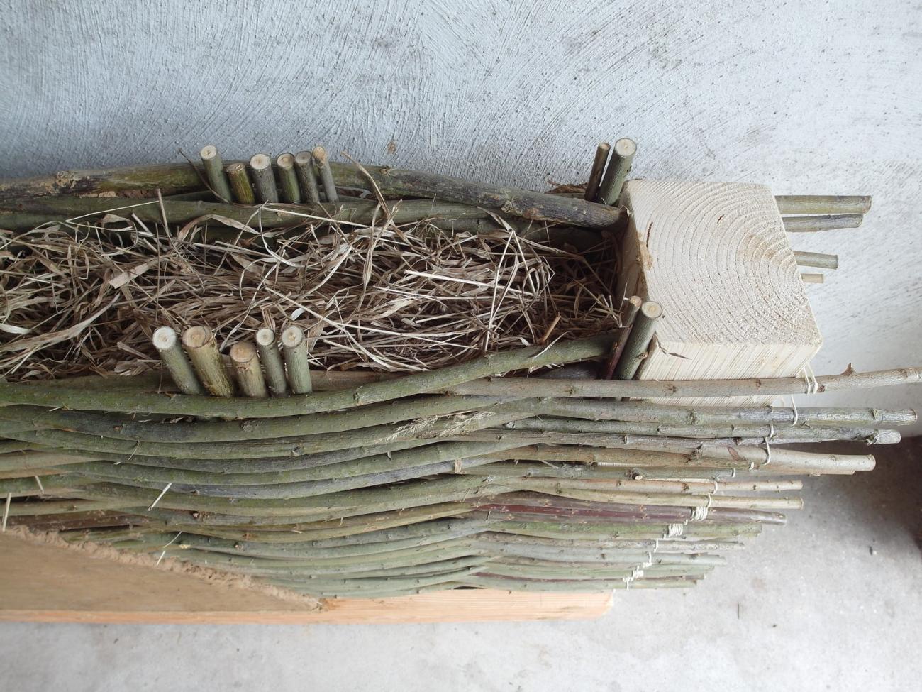 This mass mixed up with straw and pelts created good insulation between the two wattles. The loose dry grass provides better insulation, but it does not offer the same stability.