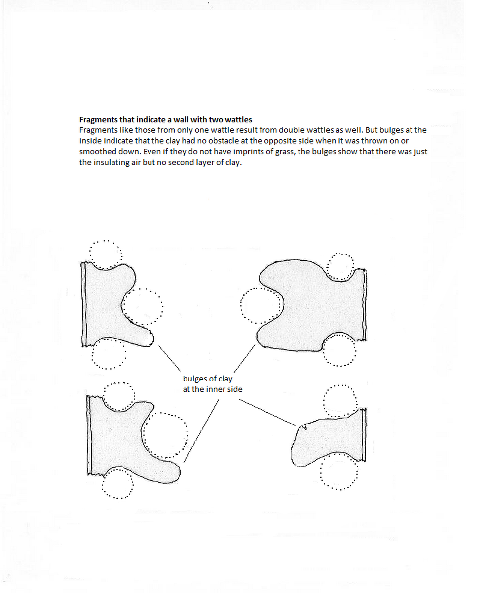 It is probable that more prehistoric houses with a construction of two wattles were built than has been estimated so far—thus making use of the good insulation. Often the clay that can be found is not really well preserved. In general till now it has not really been considered important and therefore it was not well examined.