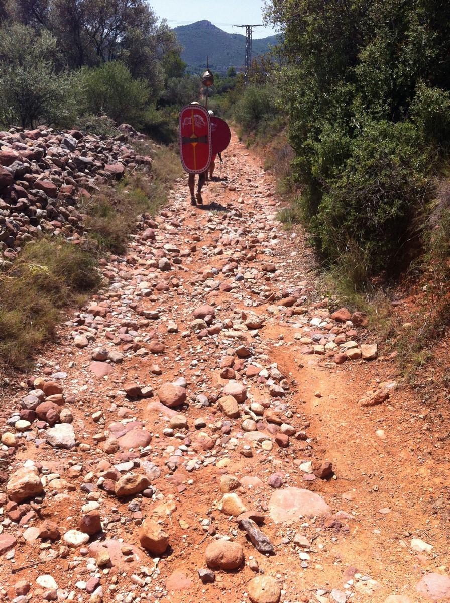 This project was designed and powered by a small archaeology company (ARTIFEX, conservation and recreation of the archaeological heritage) aiming to recreate that episode, combining science, entertainment, cultural tourism and spread of history. The project received academic and institutional support from the Experimental Archaeology Laboratory of the Universidad AutĂłnoma de Madrid, the Spanish Experimental Archaeology Association (Experimenta) and EXARC. The first attempt to fund the project was through crowd funding, trying to collect some funds for the NGS (NGO) Educo and its program âDining scholarshipsâ. The aim of this program is to provide a daily meal to the children affected by economical crises in Spain. We failed to exceed 35% of the total requested, leaving the proposal on âstand byâ. Later, we decided to fund with our own financial resources. The main objective was then to call attention to the potential of the project, to generate the interest of local public administrations that initially had ignored it, and to encourage them to financially support the project. With eight volunteers, the equivalent of a Roman Republican âcontuberniumâ (a modern platoon), with the definitive collaboration of the re-enactment groups Evocati Apri Scipioni and Ibercalafell (who generously gave part of their equipment), and the small company LA SVBVRA, SL (who fronted most of the costs), we began to walk from lâAldea on 3 August 2015 until we reach Cartagena (Murcia Region) on 17 August.