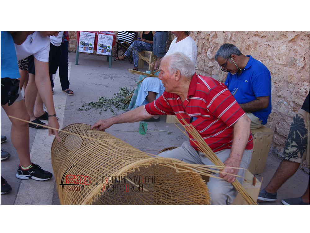Other areas of the festival were dedicated to the ancient traditions of handicraft. Many participants who handcraft had been actively involved in this Archeofest edition. In fact one of goals was about creating a connection to study the ancient technology and the local ethnographical tradition using an analogical-comparative key. The people involved included specialists who construct stone walls and âpajareâ (salentine typical rural buildings) (See Figure 20), who create fish traps (See Figure 21), and who specialise in textile decoration techniques utilising twines, along with weavers (See Figure 22) and spinners.
