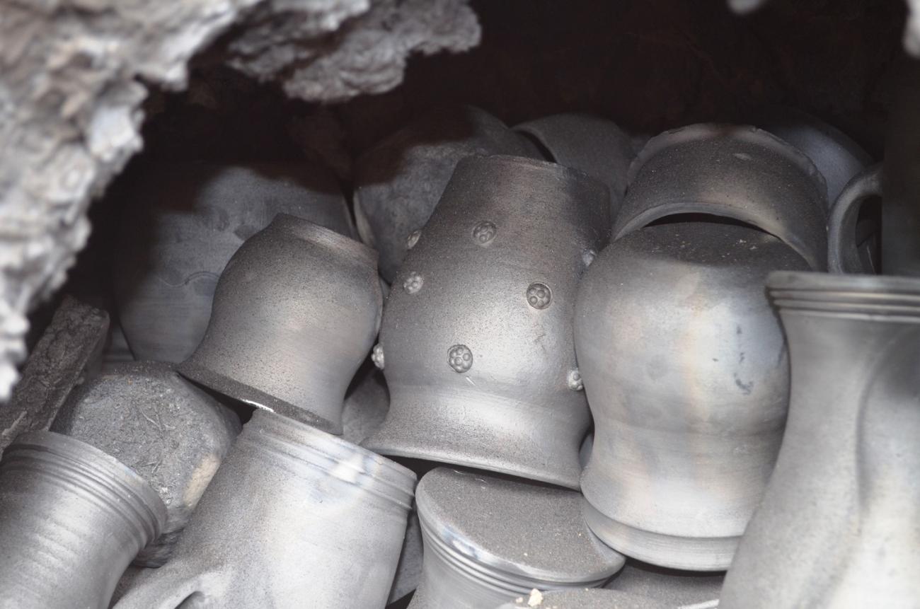 In 2014 the rest of the dome of the kiln was pulled down, the foundation wall was strengthened, both the foundation wall and the arch of the fire chamber were newly daubed and a new dome was constructed. This time, clay from the former brickworks in Luka nad Jihlavou was used for daubing the wicker construction of the dome. While building the new kiln, the fire chamber was lengthened and the flue moved further to the back part of the firing chamber. Firing in this kiln concentrated on smoke-fired pottery. The making and use of this pottery is documented from at least the end of the 14th century to the beginning of the 20th century. There were three firings carried out in the kiln, each measured with three sensors – at the front, middle and back of the firing chamber.
